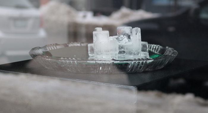 The sounds of the river travelled through a computer, a 3D printer, a silicone mold—transforming from ephemeral recording into tangible shape. Frozen into ice and set on a pedestal, the piece slowly melts, returning to water and air. As it moves through these shifting states, the work becomes less about a fixed object and more about a process in flux.