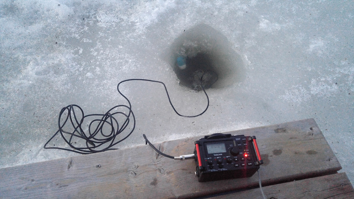 This work moves through the spaces where sound dissolves into form, form flows into liquid, and liquid drifts away as vapour. It began with the subtle sounds of melting ice along the shores of the Sturgeon River — a body of water that shaped my sense of place. I recorded the quiet cracking and melting with a hydrophone I built myself.