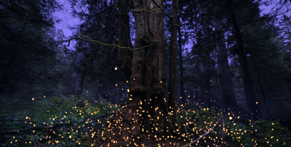 Embers and the Giants presents an endangered, old-growth forest during twilight, articulated by thousands of embers of light. Are we witness to a rare, exceptionally beautiful display of fireflies? Or is human intervention at play, suggesting a time when we’ll need to amplify nature in order to convince the public of its worth?