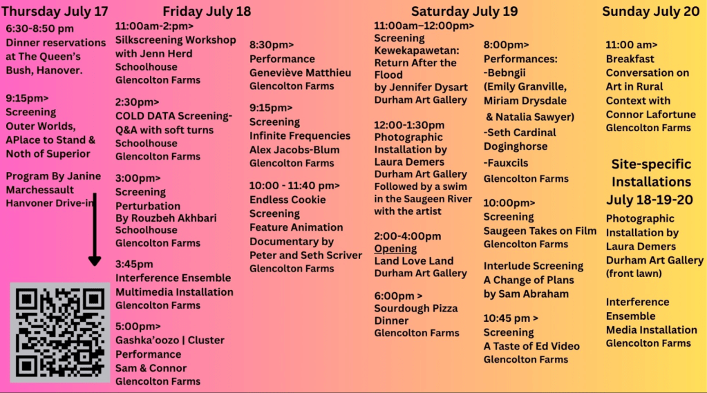 soft turns, COLD DATA screening / projection, July 18 julliet, 2:30pm, Schoolhouse ferme Glencolton Farms info.