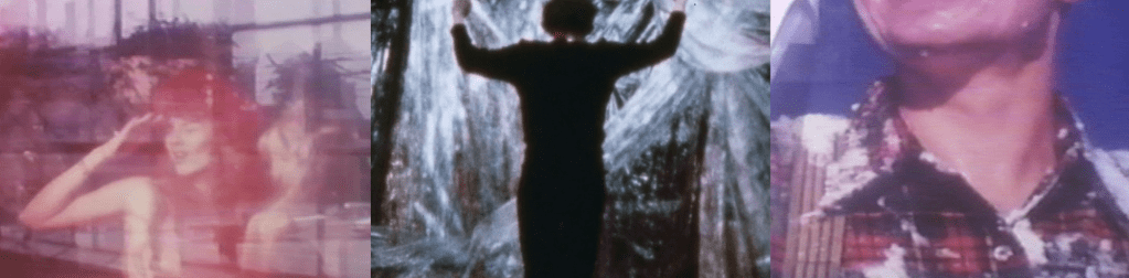 Romanticism for the ’80s, this is an exploration of a relationship as it unfolds (or has unfolded). Combustion is created by merging five separate anecdotes into a single piece. Our couple travel to the American South-West, where they explore their relationship with each other using the interview format. She sees no one else but him. He, however, speaks in a manner that suggests she’s not the only one in his life. “I can’t help myself” he explains. Girls plant crimson kisses on his body. One girl sings, “I hate you”. Two others chorus, “Yea Yea” to him—including his film-maker/lover.