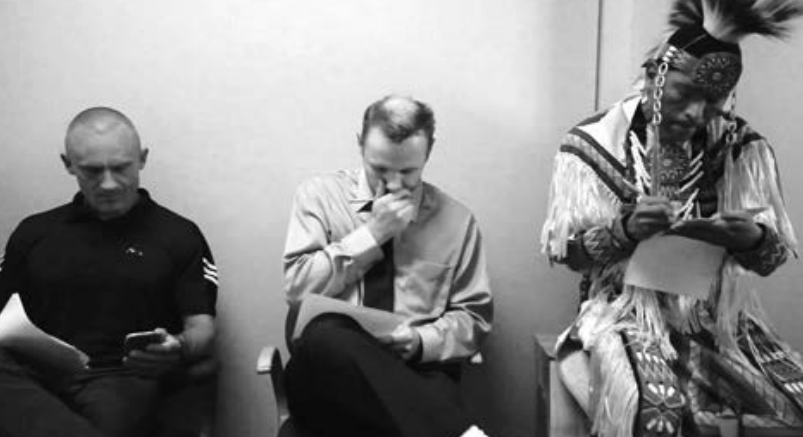 A Native American man finds himself in a long line of applicants waiting to apply for a job. While filling in the application, he notices a glaring omission on the form and decides to point out to the interviewer